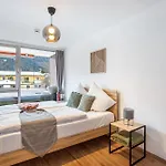 Eine voll ausgestattete Küche mit einem Wasserkocher, einem Herd und Küchenutensilien gehört zur Ausstattung der Ferienwohnung The View 2 für Selbstversorger. Dieses Apartment befindet sich in 450 Meter Entfernung von der Seilbahnstation Predigtstuhlbahn Talstation. Darüber hinaus stehen den Gästen Yogastunden zur Verfügung.